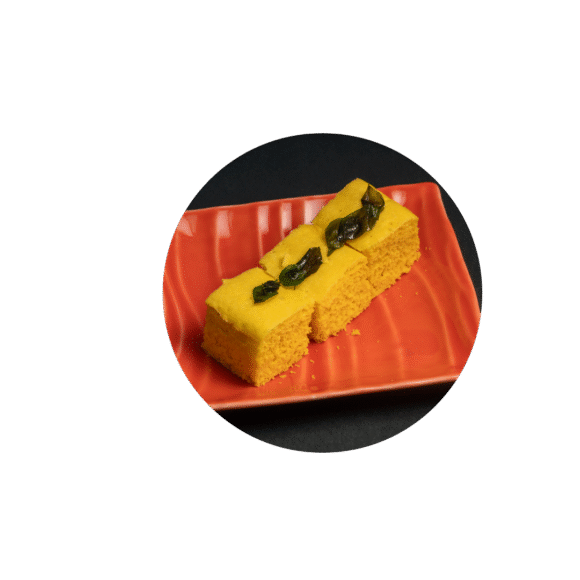 Steamed savoury cake made of gram flour with a tempering of mustard seeds, best enjoyed with a side of cilantro chutney